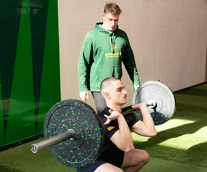 Maxime Aubertin et Christian Dallaire, kinésiologues et préparateurs physiques qualifiés et professionnels, sont présents sur place pour supporter le montage de programmes d’entraînement des équipes sportives des Condors.
