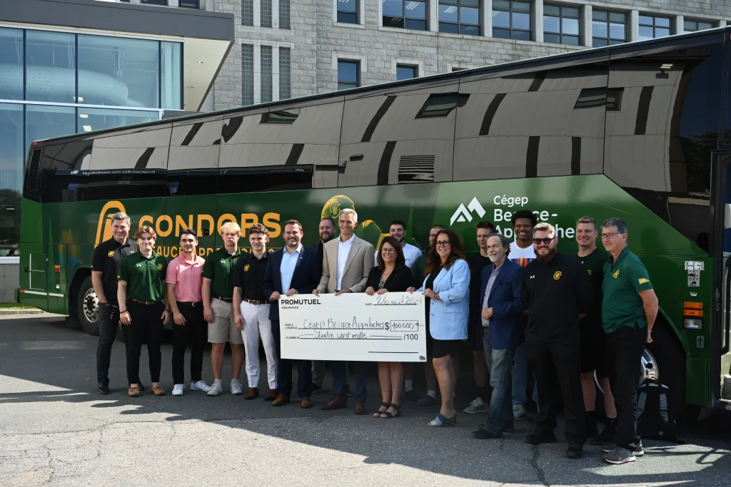 Avec cette entente, l’autocar Promutuel Assurance poursuivra sa route en transportant les athlètes Condors et les membres de la communauté étudiante lors des sorties pédagogiques.
